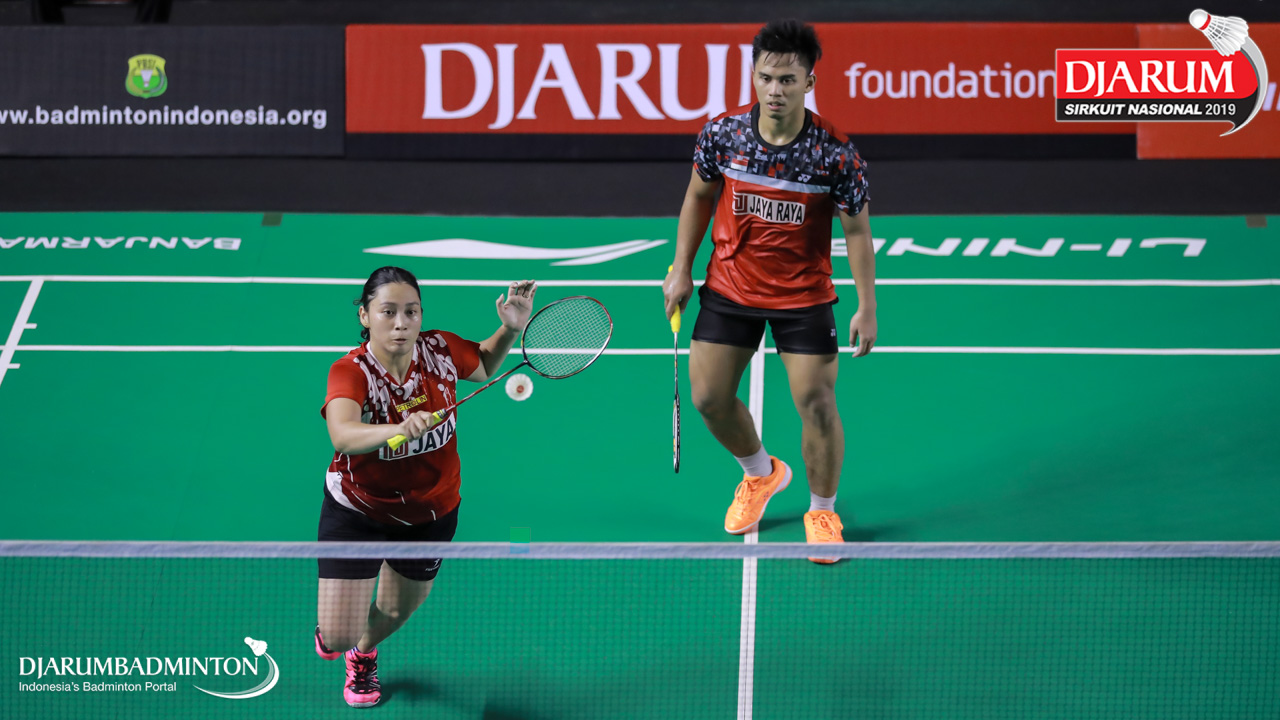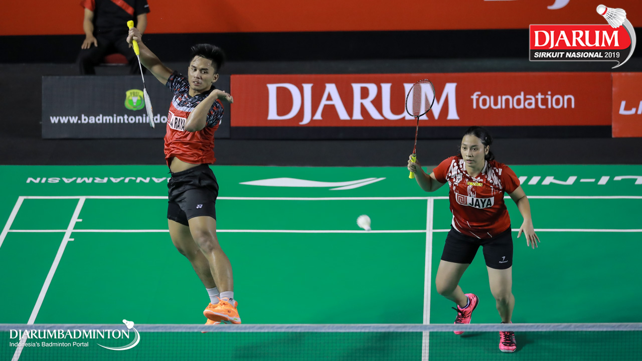 Amri Syahnawi+Pia Zebadiah Bernadet (Jaya Raya Jakarta) berusaha mengembalikan serangan