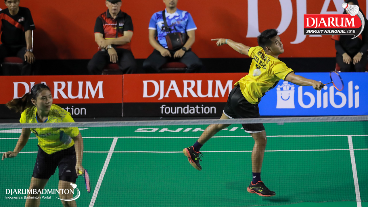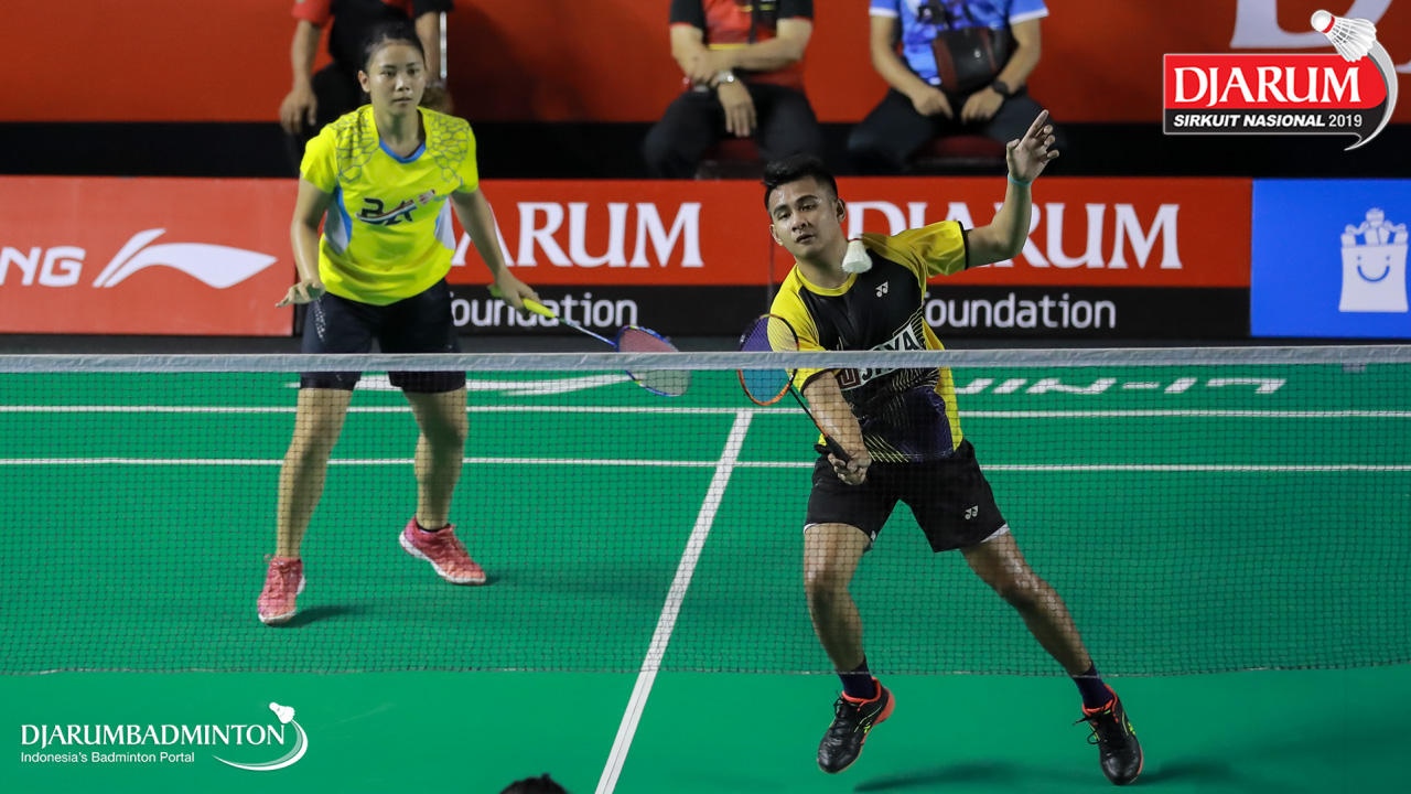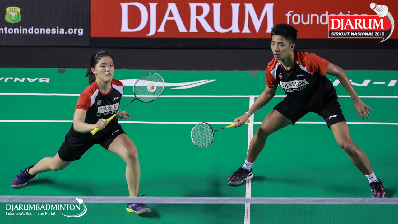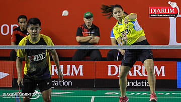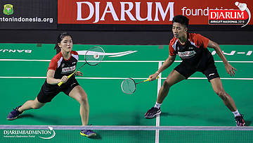 Dejan Ferdinansyah+Serena Kani (PB Djarum, Kudus) bersiap memyambut shuttlecock