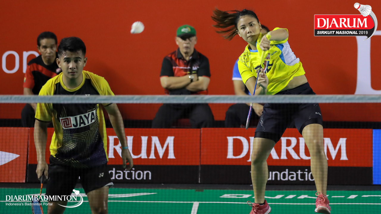 M. Fachrikar P. Mansur+Brigita Marcelia Rumambi (Jaya Raya Jakarta+Berkat Abadi, Banjar) mengembalikan serangan