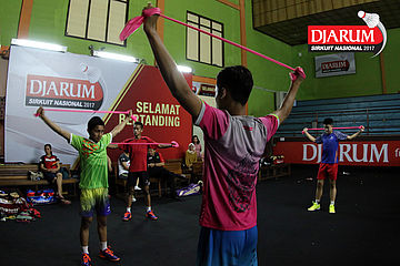 Beberapa Atlet Djarum Kudus Saat Melakukan Peregangan Sebelum Berlatih