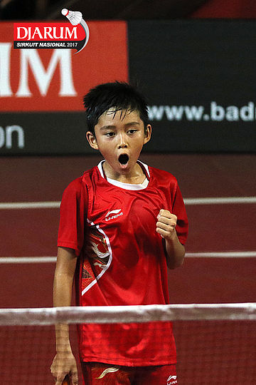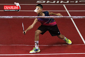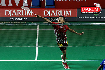 Andika Putra (Victory Bogor) Mengembalikan Shuttlecock