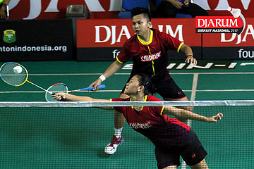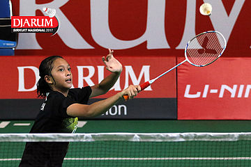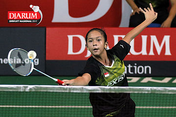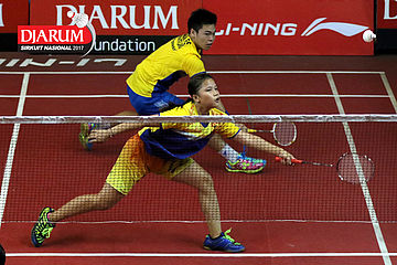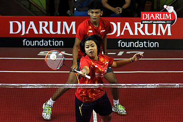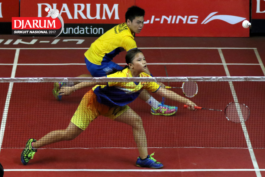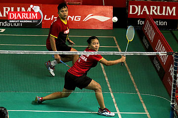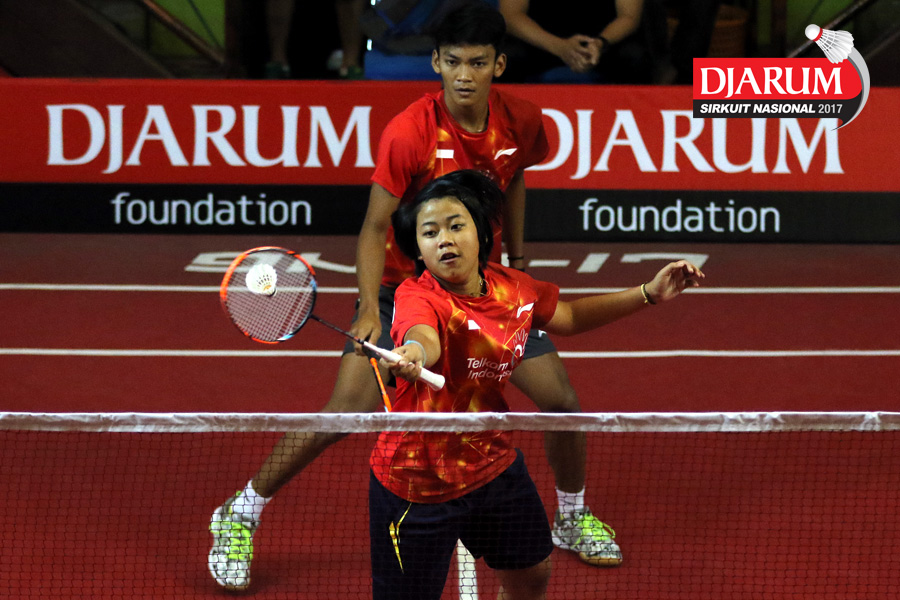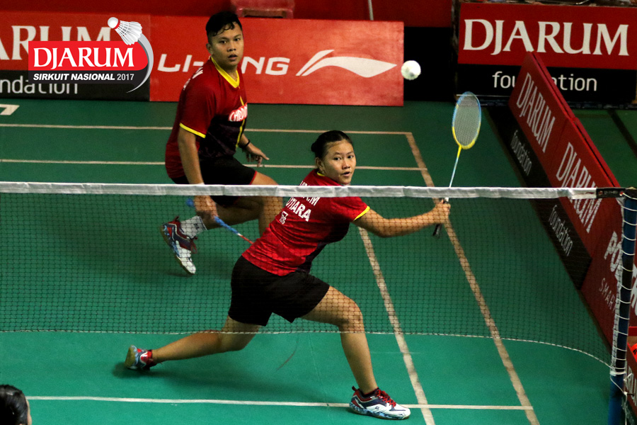 Bryan Sydney/Dea Putri (Tangkas Intiland) Mengembalikan Shuttlecock
