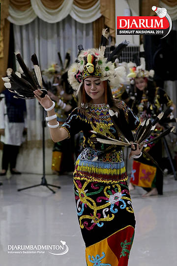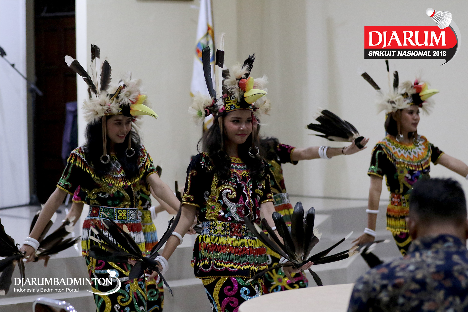 Penampilan salah satu tarian khas Kalimantan dalam acara Welcome Djarum Sirkuit Nasional Kalimantan Timur Open 2018