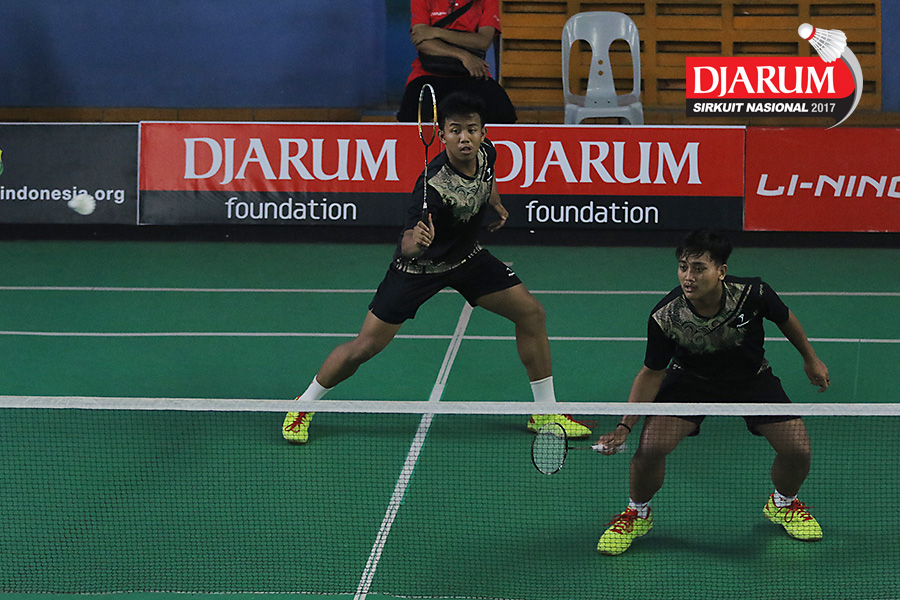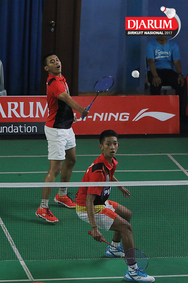 Erwin Rendana Purnomo/Muchamad Taghjul Arifin Billah (Bayu Kencana Pasuruan) Mengembalikan Shuttlecock