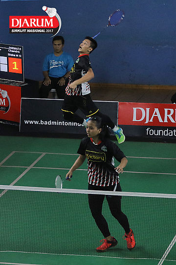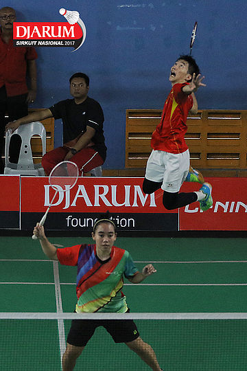 Muhammad Juan Elgiffani/Windi Siti Mulyani (Victory Bogor) Melakukan Jump Smash