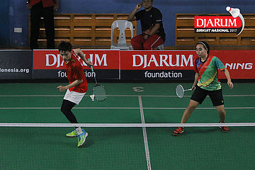 Steven Henri Cornelis/Desta Akastiningrum (Pusdiklat Telkom Bandung) Mengembalikan Shuttlecock