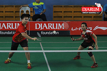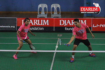 Tedi Supriadi/Devi Tika Permatasari (Djarum Kudus/Berkat Abadi Banjarmasin) Bersiap Menyambar Pengembalian