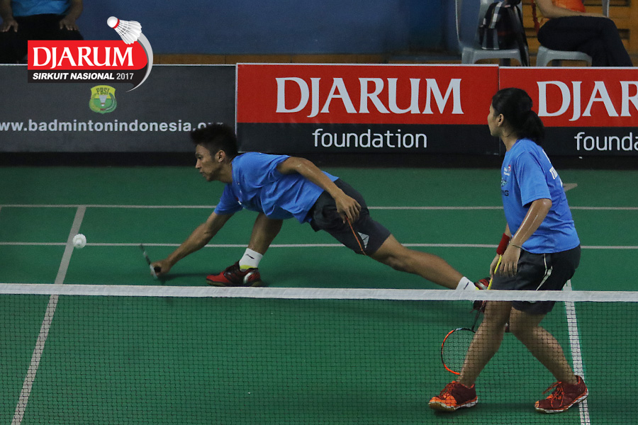 Reinard Dhanriano/Maretha Dea Giovani (Mutiara Cardinal Bandung) Mengembalikan Shuttlecock