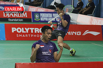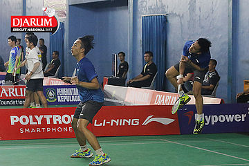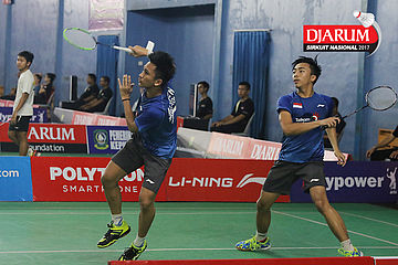 Habib Alfariz/Steven Henri Cornelis (Pusdiklat Telkom Bandung) Melepaskan Serangan