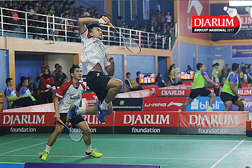 Althof Baariq/Reinard Dhanriano (Mutiara Cardinal Bandung) Bersiap Melakukan Smash