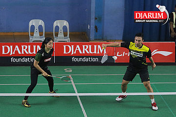 Tedi Supriadi/Devi Tika Permatasari (Djarum Kudus/Berkat Abadi Banjarmasin) Bersiap Melakukan Smash