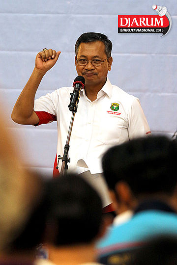 Achmad Budiharto (Wakil Sekejen PP PBSI) saat memberikan sambutan di acara Welcome Dinner