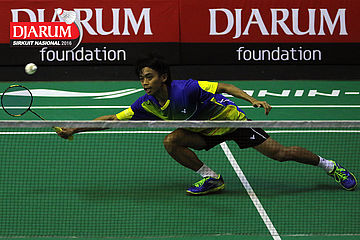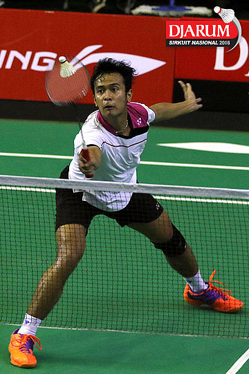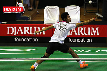 Isna Sakti (Suryabaja) mengembalikan shuttlecock