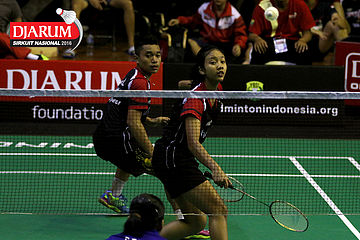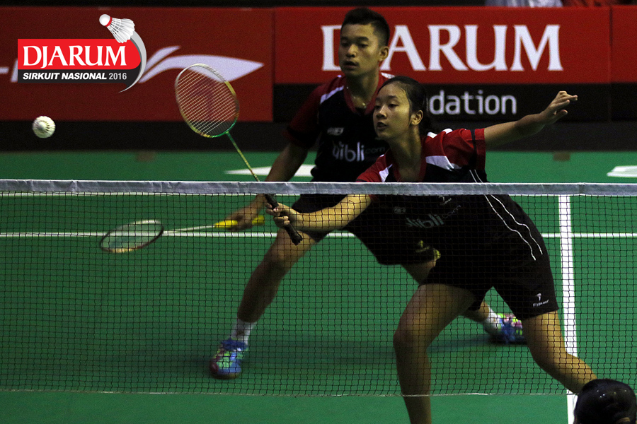 Leo Rolly/Metya Inayah (Djarum Kudus) mengembalikan shuttlecock