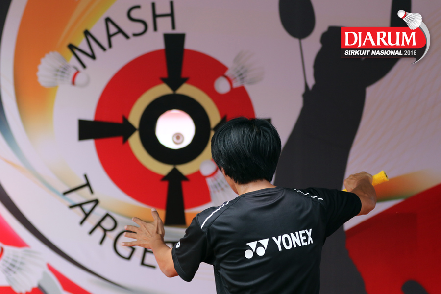 Salah satu pengunjung saat bermain Smash Target di booth Merchandise Djarum Sirkuit Nasional