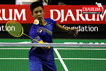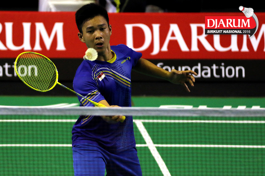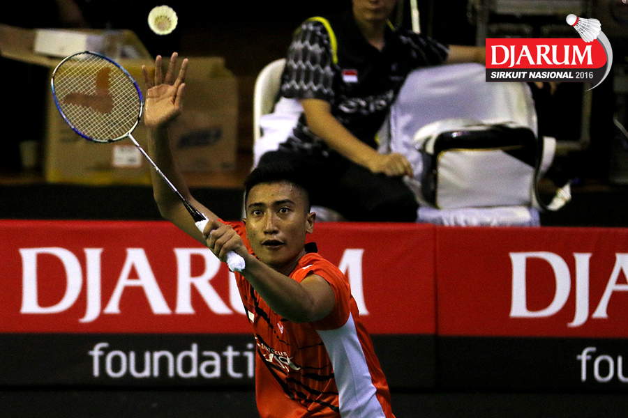 Tri Cahya (Djarum Kudus) melepaskan serangan