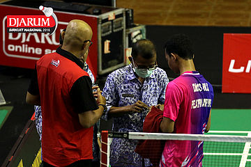 Salah satu pebulutangkis saat mendapatkan perawatan medis