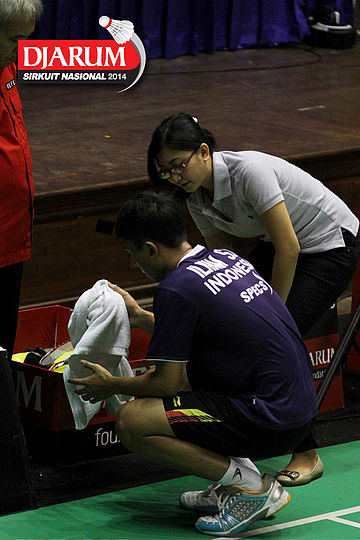 Ilham Sri Yulianto (TANGKAS JAKARTA) mendapatkan perawatan medis