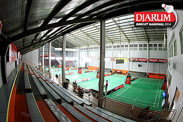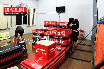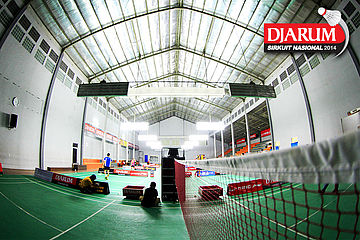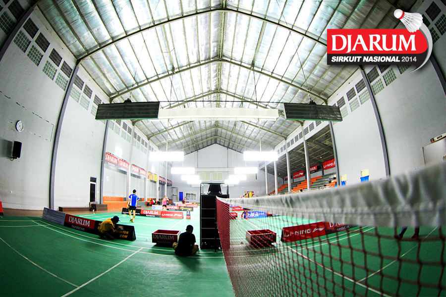 Suasana persiapan GOR ASA Sport Center, Cilegon sebelum dimulainya gelaran Djarum Sirkuit Nasional Li-Ning Banten Open 2014