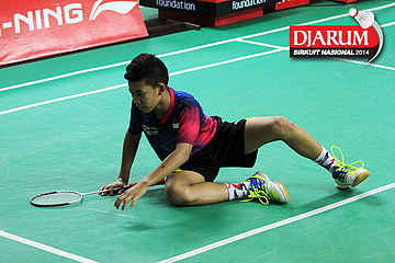 Nijynsco Kaleb (Candra Wijaya) saat mengikat tali sepatu