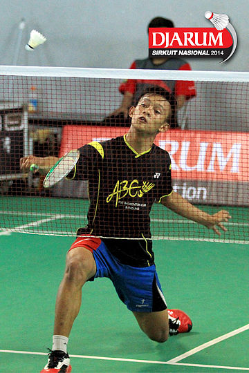 Daniel Ari Wibisono (Sarwendah) menyambar pengembalian dari Nijynsco Kaleb (Candra Wijaya)