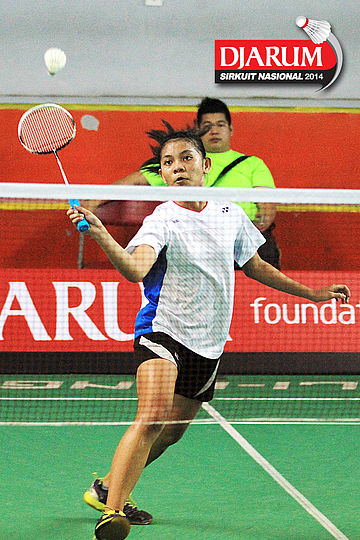 Fajriatul Aulia (Suluh Adrhi Engineering) berusaha menggapai pengembalian dari Tessa Anjeli Karaouw (Tangkas)