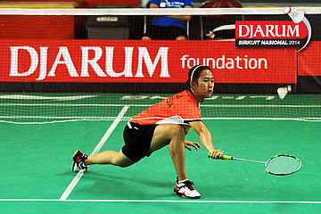 Ghaida Nurul (Djarum Kudus) berhasil menyambut pengembalian dari Fitria Anggraeni (Exist Sampurna)