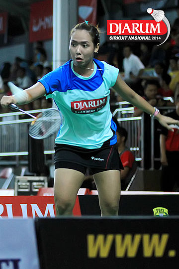 Ana Rovita (Djarum Kudus) berhasil menghadang serangan yang dilepaskan Jauza Fadhila (Pelatprov PBSI DKI Jakarta)