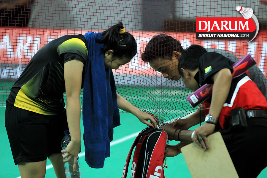Ana Rovita (Djarum Kudus) menyambut pengembalian dari Jauza Fadhila (Pelatprov PBSI DKI Jakarta)