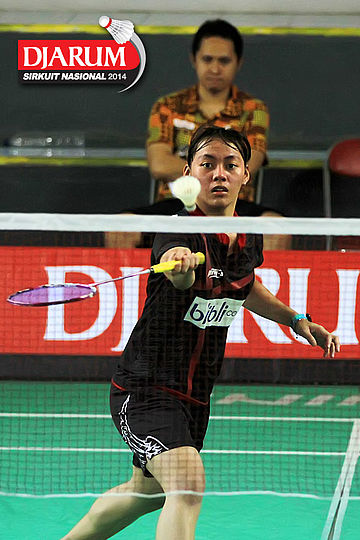 Rusydina Antardayu (Tangkas) bersiap menyambar pengembalian dari Yeni Asmarani (Djarum Kudus)