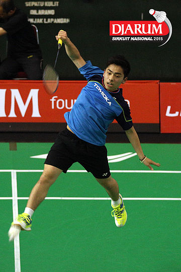 Keisuke Kuba (Tomioka Jepang) melepaskan smash ke arah Lai Li Yu (Taiwan).