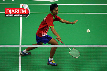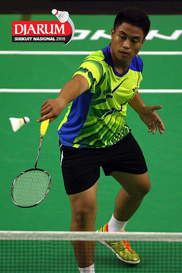 Andriansyah (Boeana Raya) mengembalikan shuttlecock ke arah Chang Chin Yuan (Taiwan).