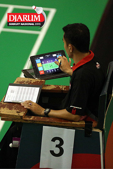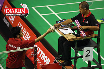 Salah satu wasit saat memberikan pergantian shuttlecock.