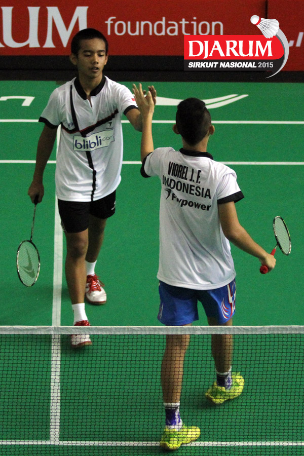 Kekompakan Pramudya Kusumawardana dan Viorel Joan (Djarum Kudus) di lapangan.