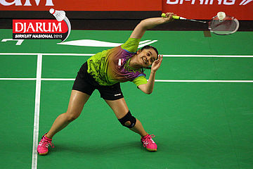 Aprillia Yuswandari (Semen Gresik) menyambar pengembalian dari Lyanny Alessandra (Putra Mainaky).
