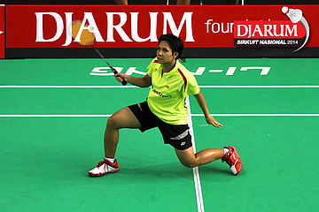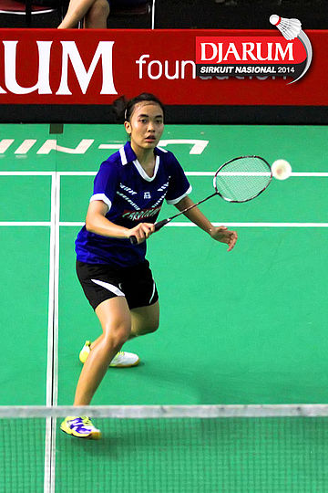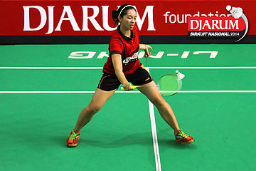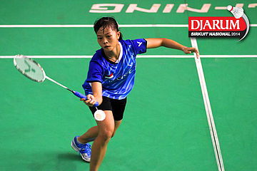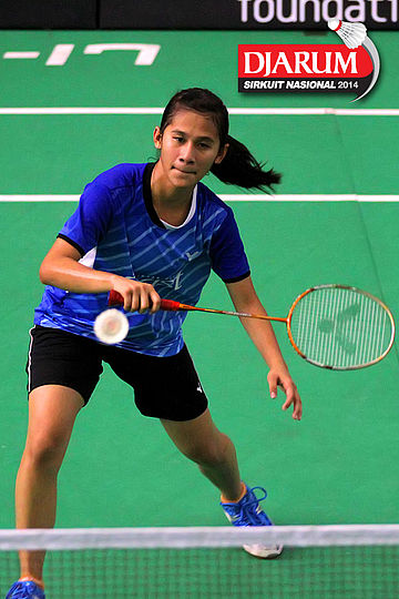 Linda Mutiara (Mutiara Bandung). bersiap menyambut pengembalian dari Devi Yunita (PB Djarum)