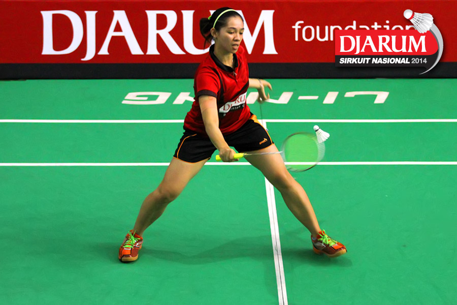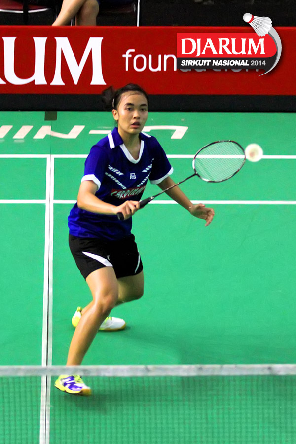 Febby Angguni (PB Djarum) berhasil menghadang serangan yang dilepaskan Ganis Nurrahmandani (Pertamina Indonesia)