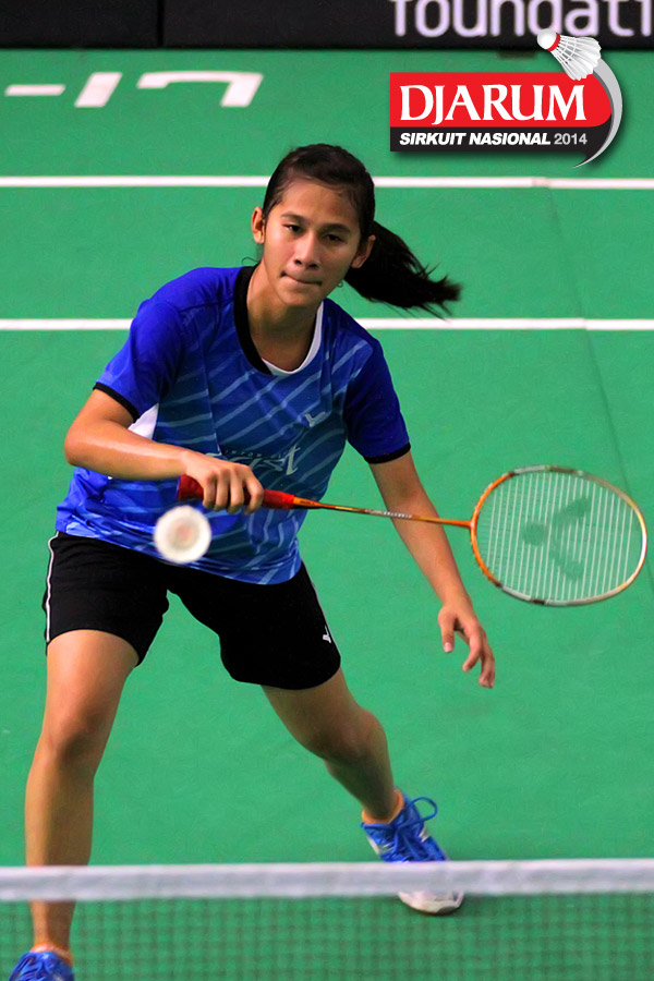 Ganis Nurrahmandani (Pertamina Indonesia) berhasil menghadang serangan yang dilepaskan Febby Angguni (PB Djarum)