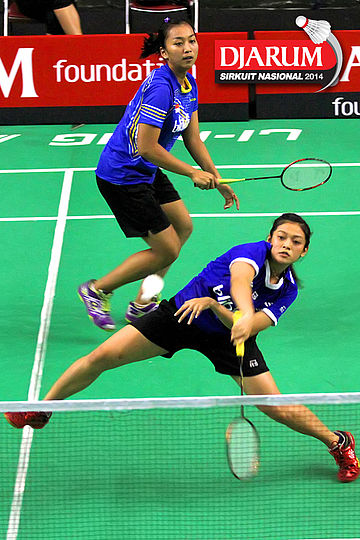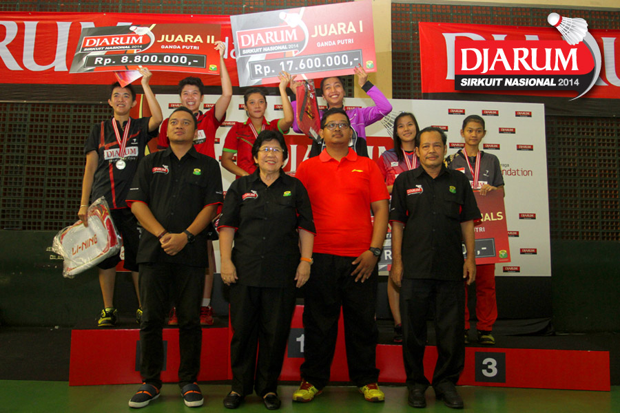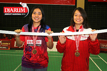 Marsheilla Gischa/Ramadhani Hastiyanti (PB Djarum) berhasil menghadang pengembalian dari Nisak Puji/Rika Rositawati (Mutiara Bandung)