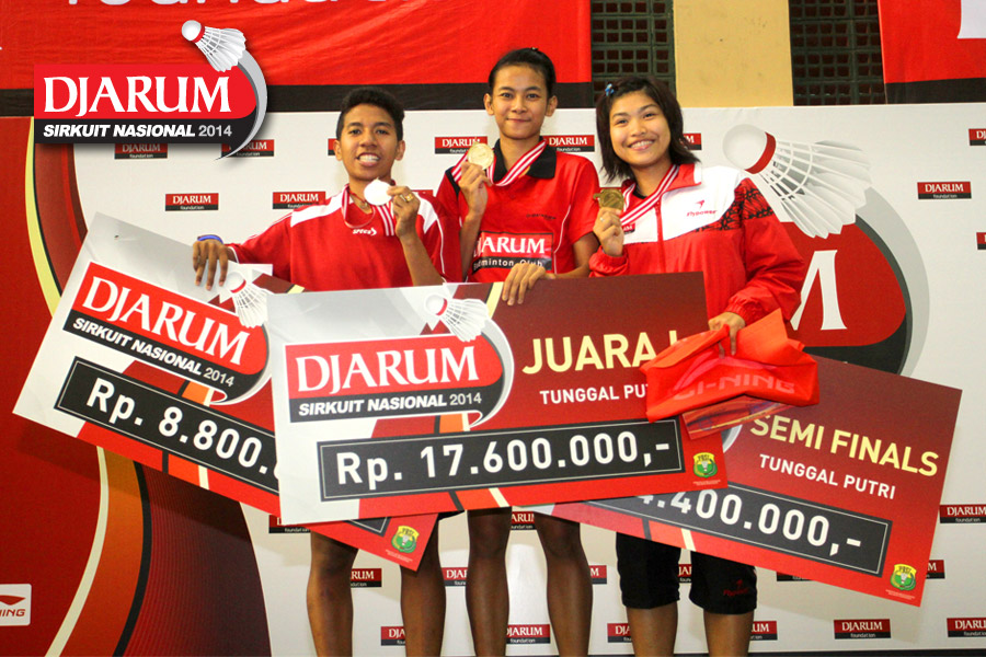 Dinar Dyah Ayustine, Intan Dwi dan Tedi Supriadi berpose bersama usai turun podium