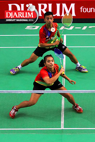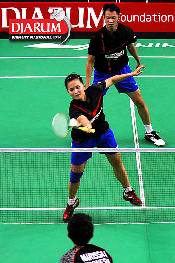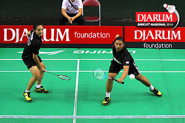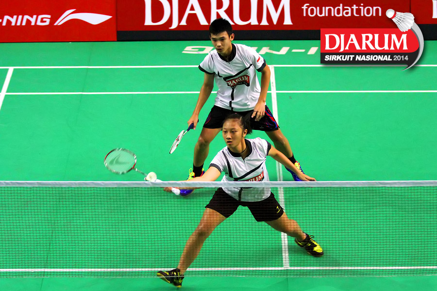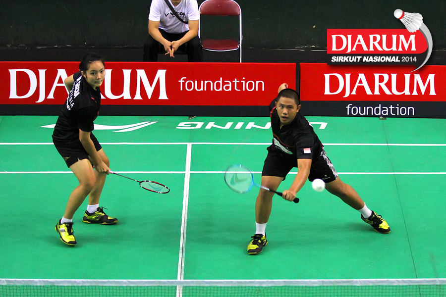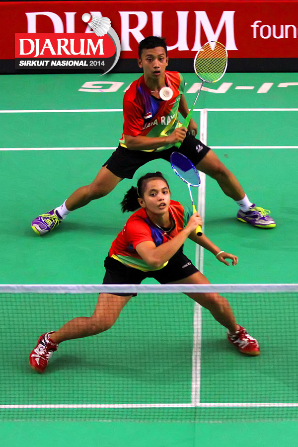 Yantoni Edi/Marsheilla Gischa (PB Djarum) berhasil menghadang pengembalian dari Reinard Dhanriano/Nisak Puji (Mutiara Bandung)