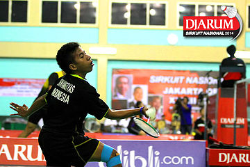Fran Kurniawan/Komala Dewi (PB Djarum) menyambar serve dari Trikus Haryanto/Vita Marissa (Tjakrindo Master/PB Djarum)