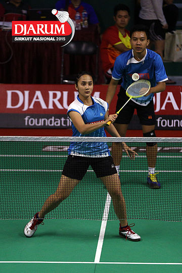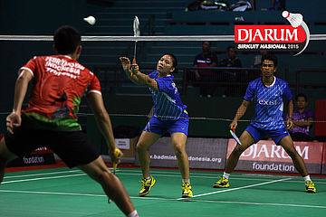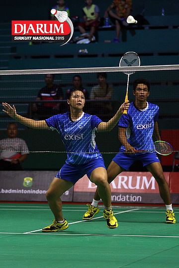 Galang Decky/Cynthia Shara (Djarum Kudus) menghadang serangan.