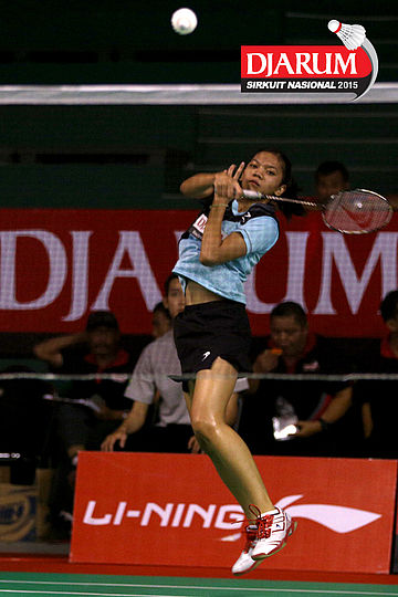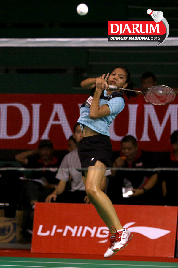 Alya Rahma (Djarum Kudus) melepaskan serangan.