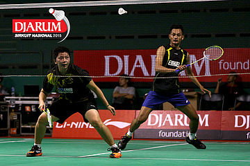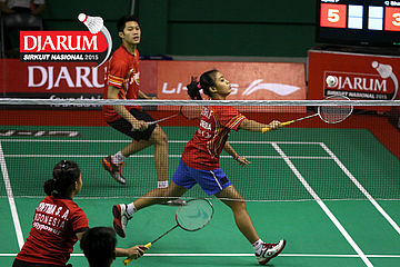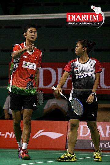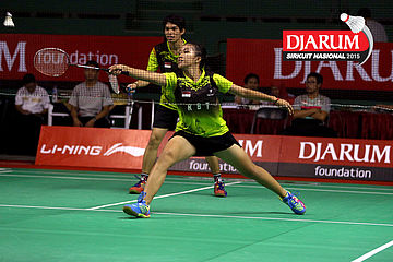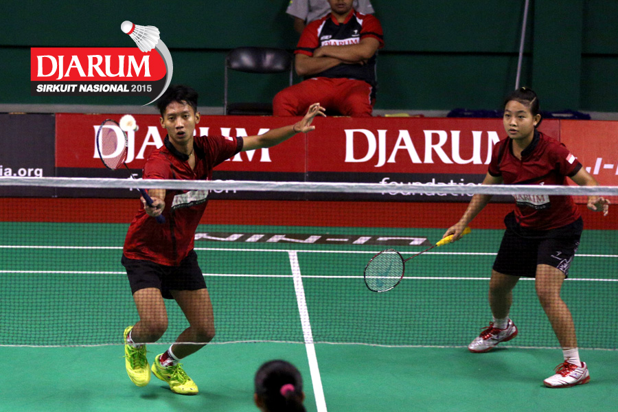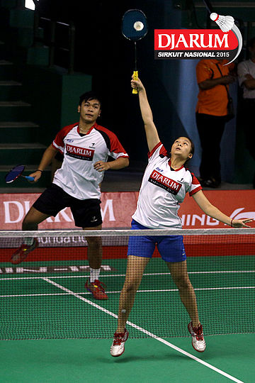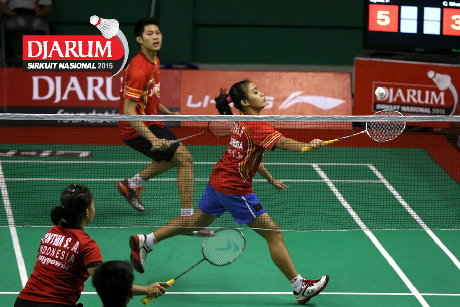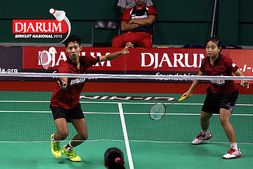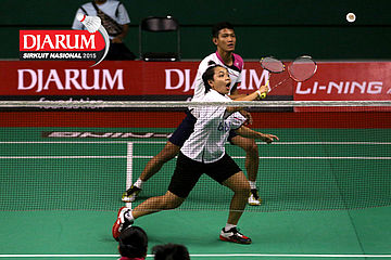 Panji Akbar/Apriyani Rahayu (Pelita Bakrie) bersiap menyambut pengembalian.