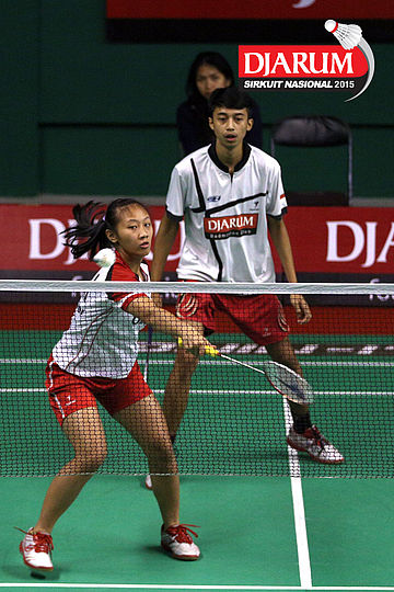 Nugroho Andi/Natalia Poluakan (JR Enkei) bersiap menyambut pengembalian.