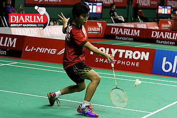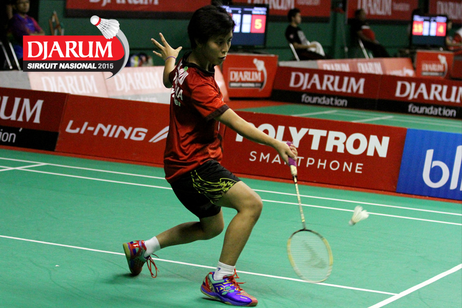 Aldira Rizky (Djarum Kudus) menyambut shuttlecock.