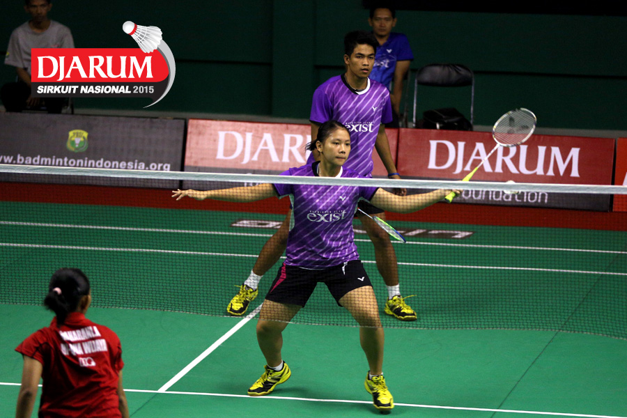 Bagas Maulana/Tania Oktaviani (Djarum Kudus) bersiap menyambut shuttlecock.