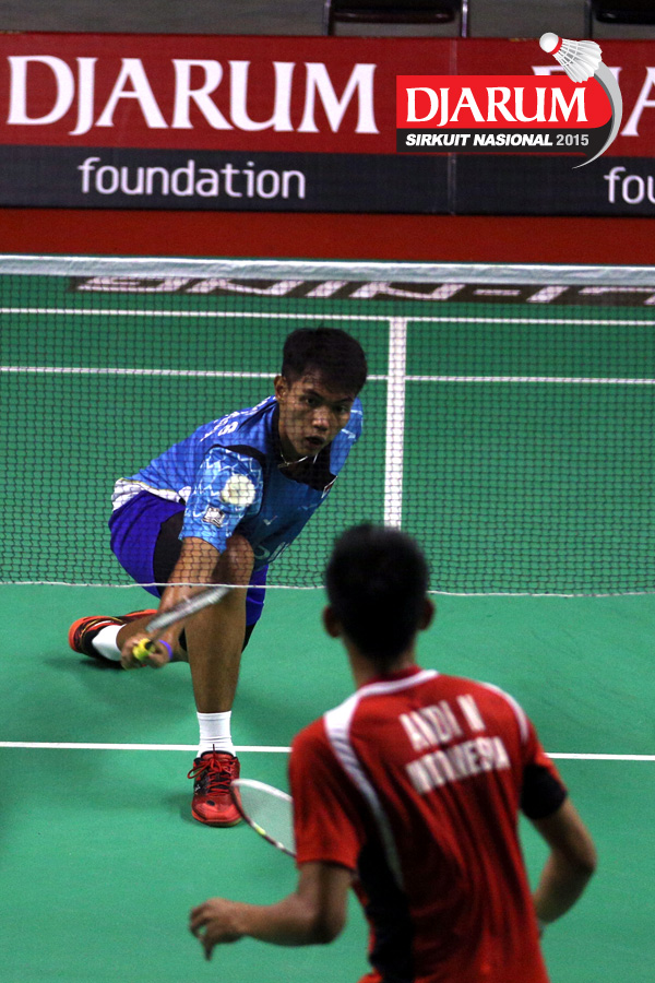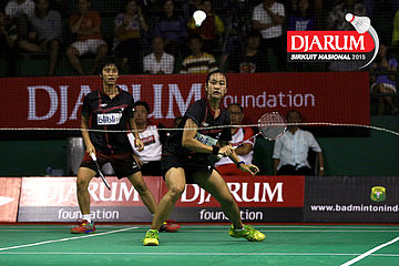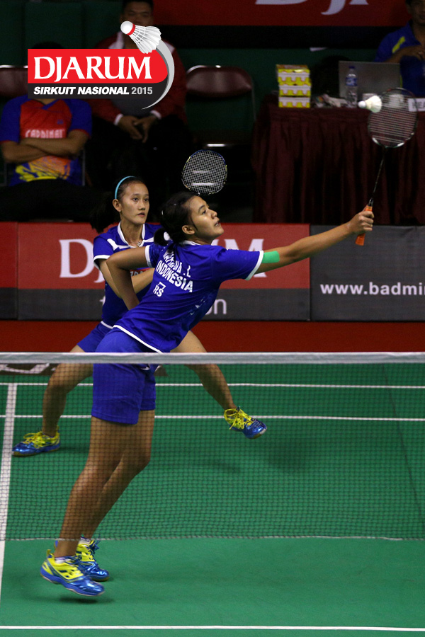 Aldira Rizky/Lisa Ayu (Djarum Kudus) bersiap menyambut pengembalian.