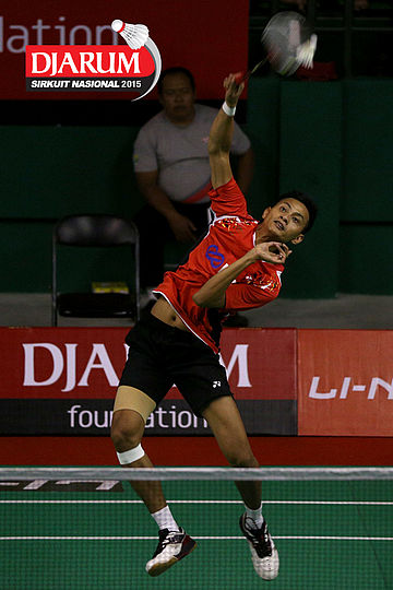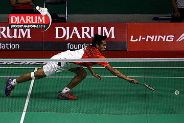 Krinsa Adi (Pelatnas) bersiap menyambar pengembalian.
